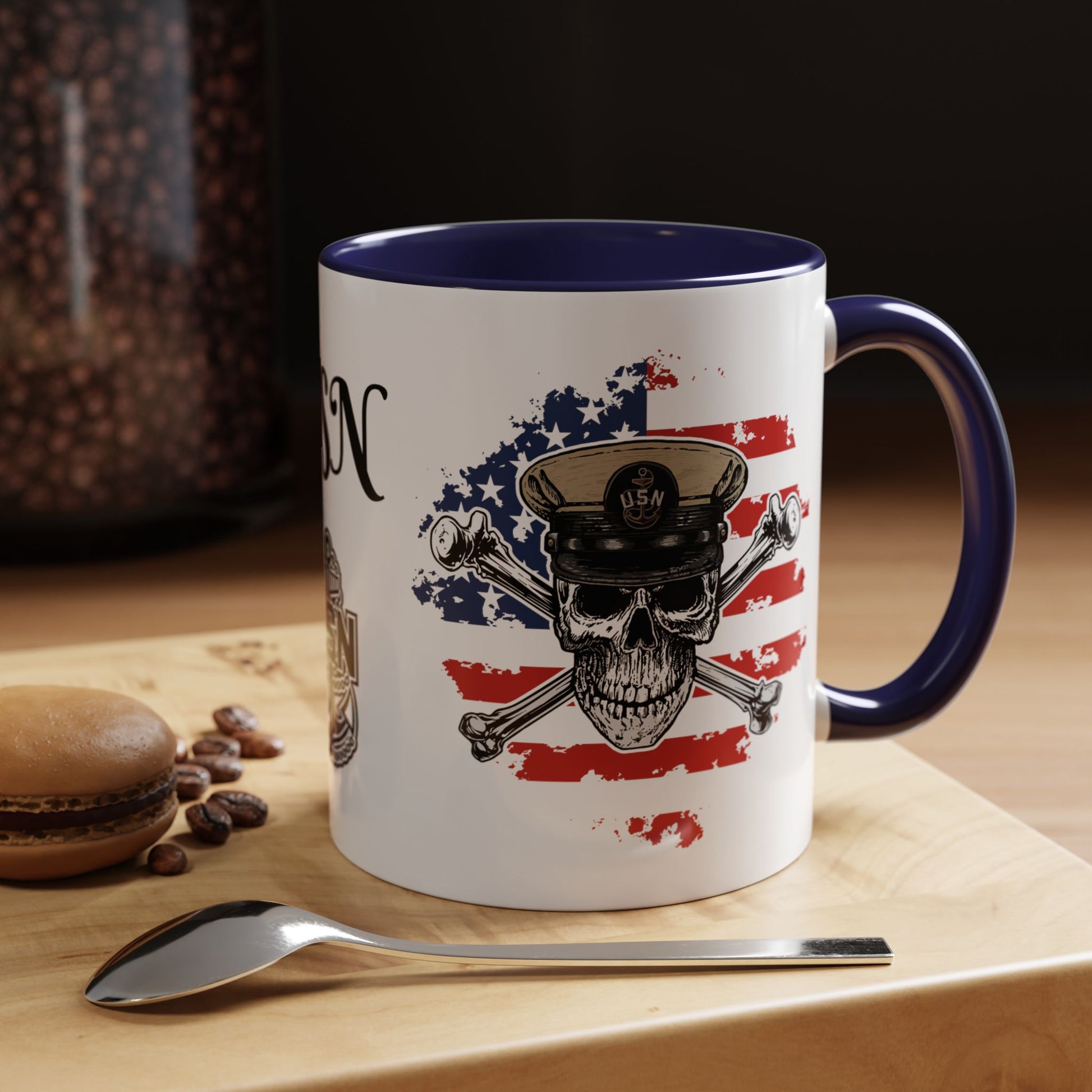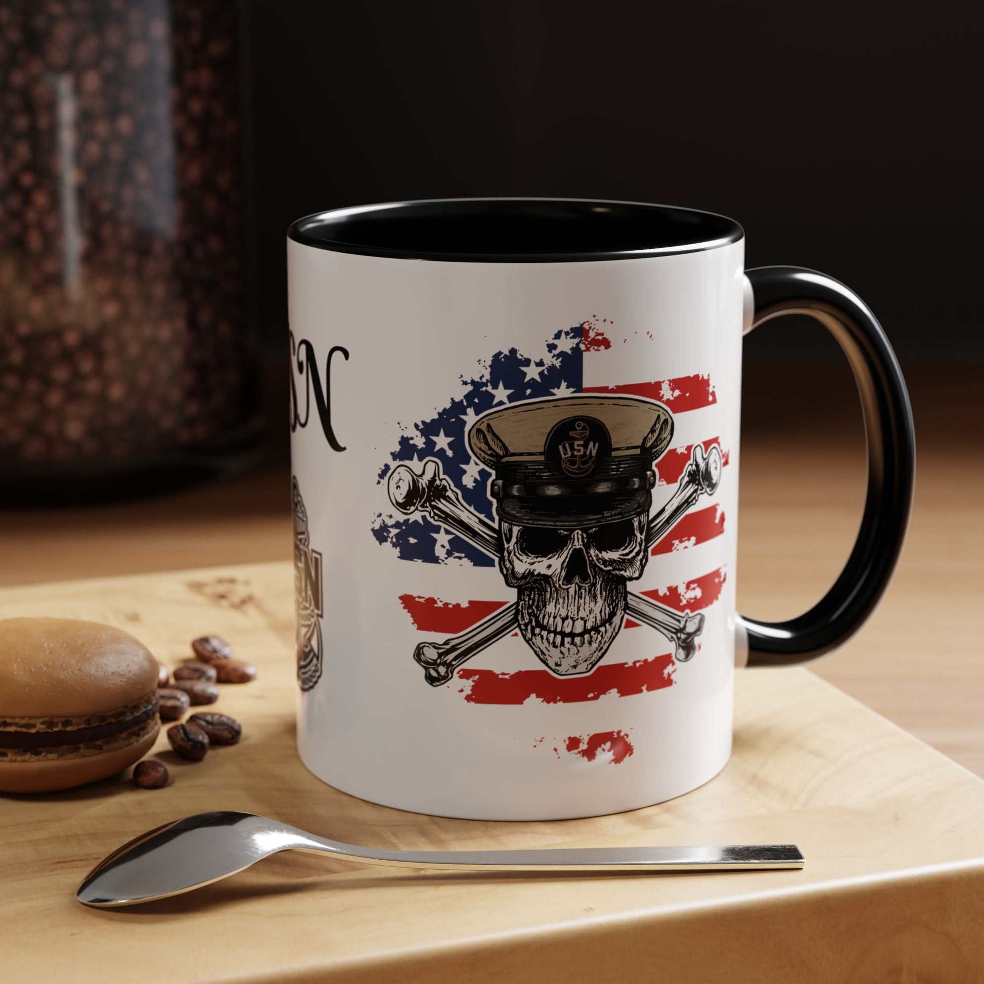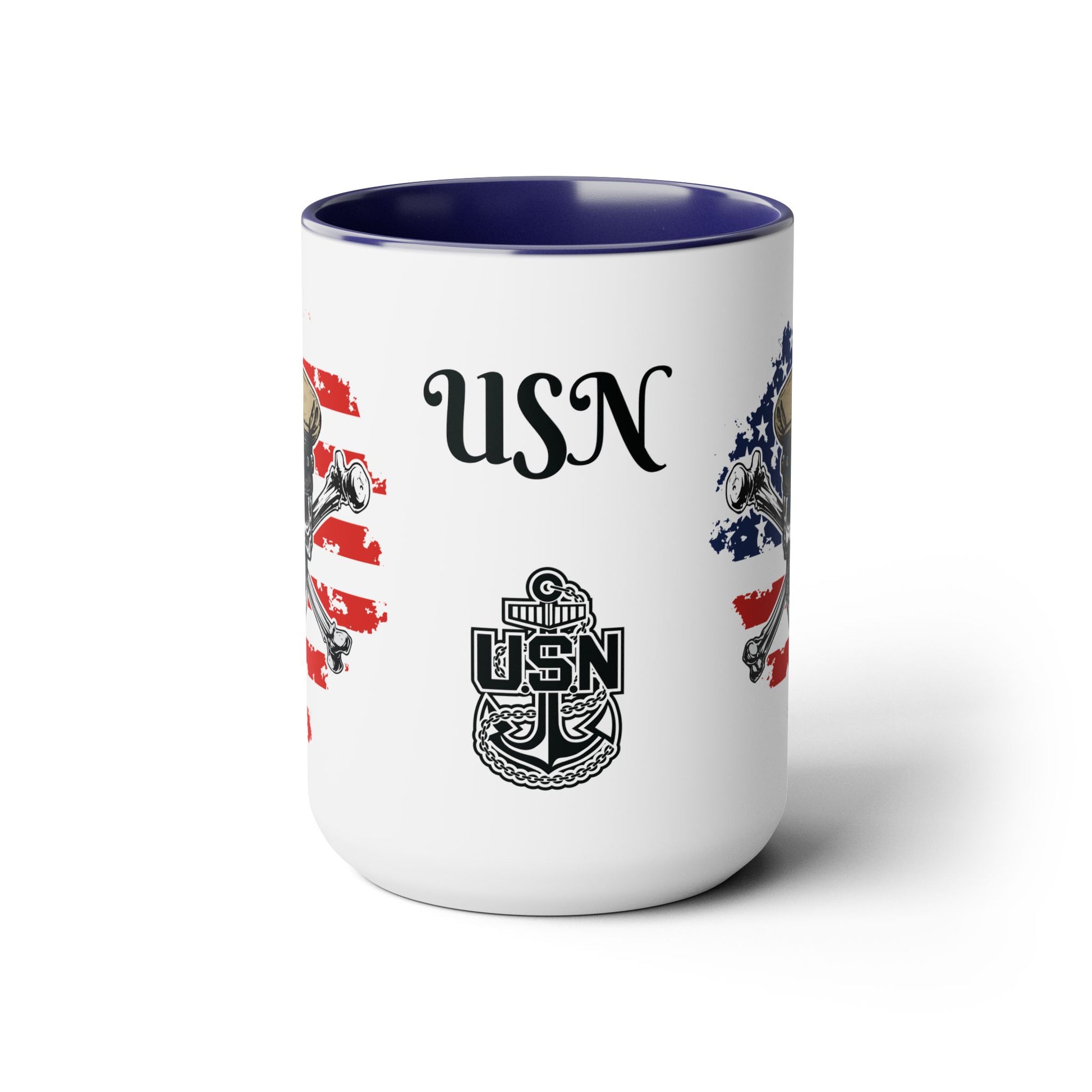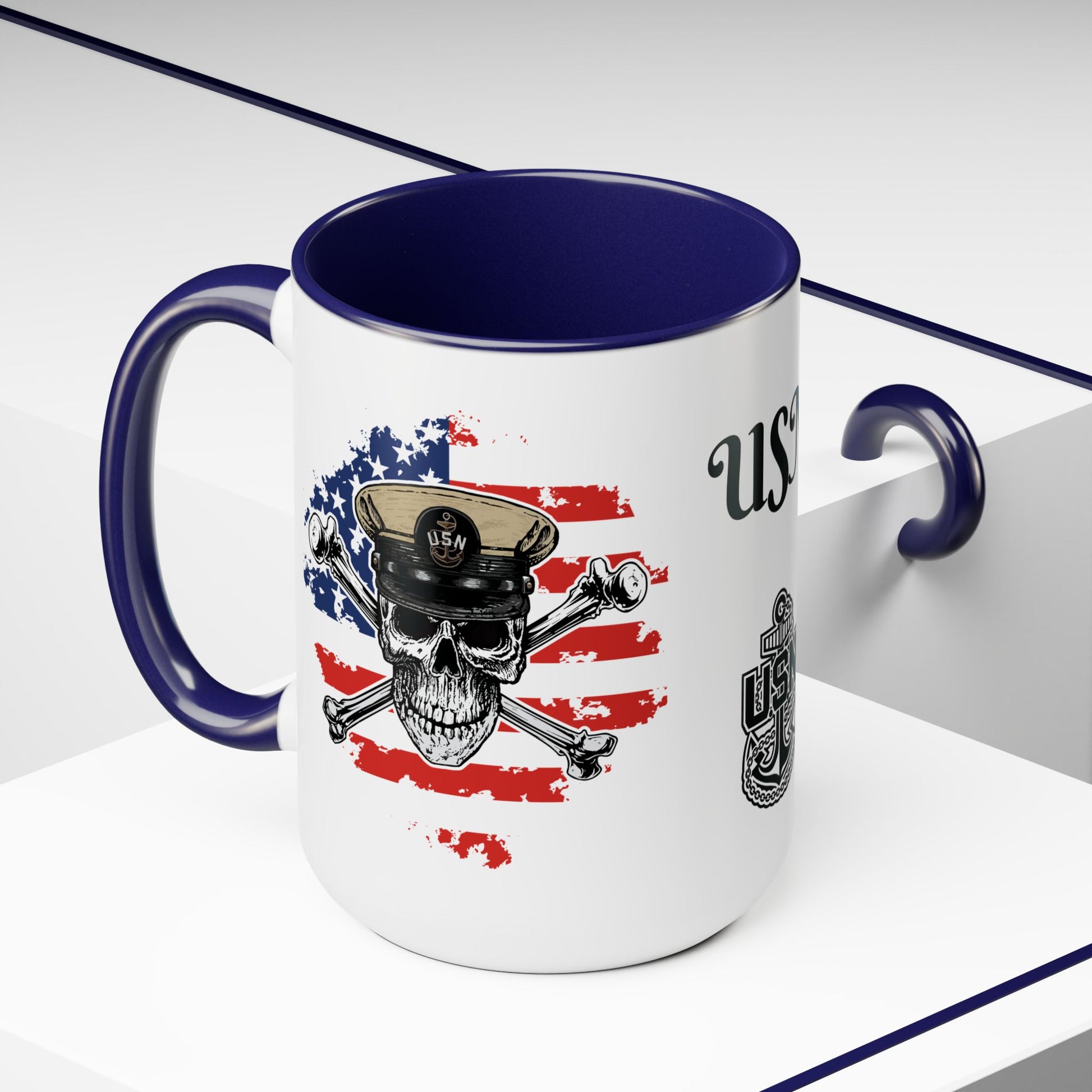 United States Navy Chief Skull & Crossbones on USA Flag with CPO Anchor tea & coffee Two-Tone Accent mug.