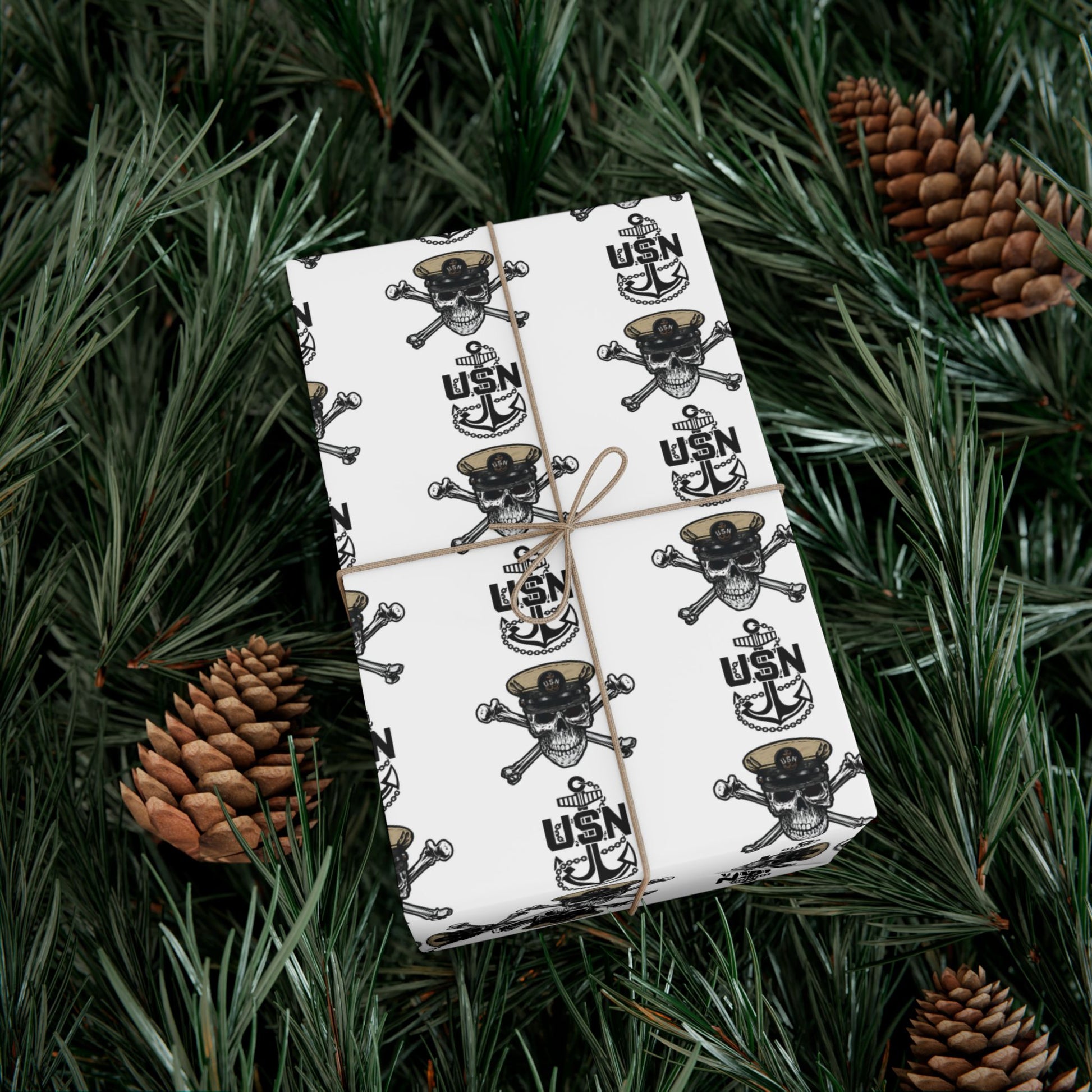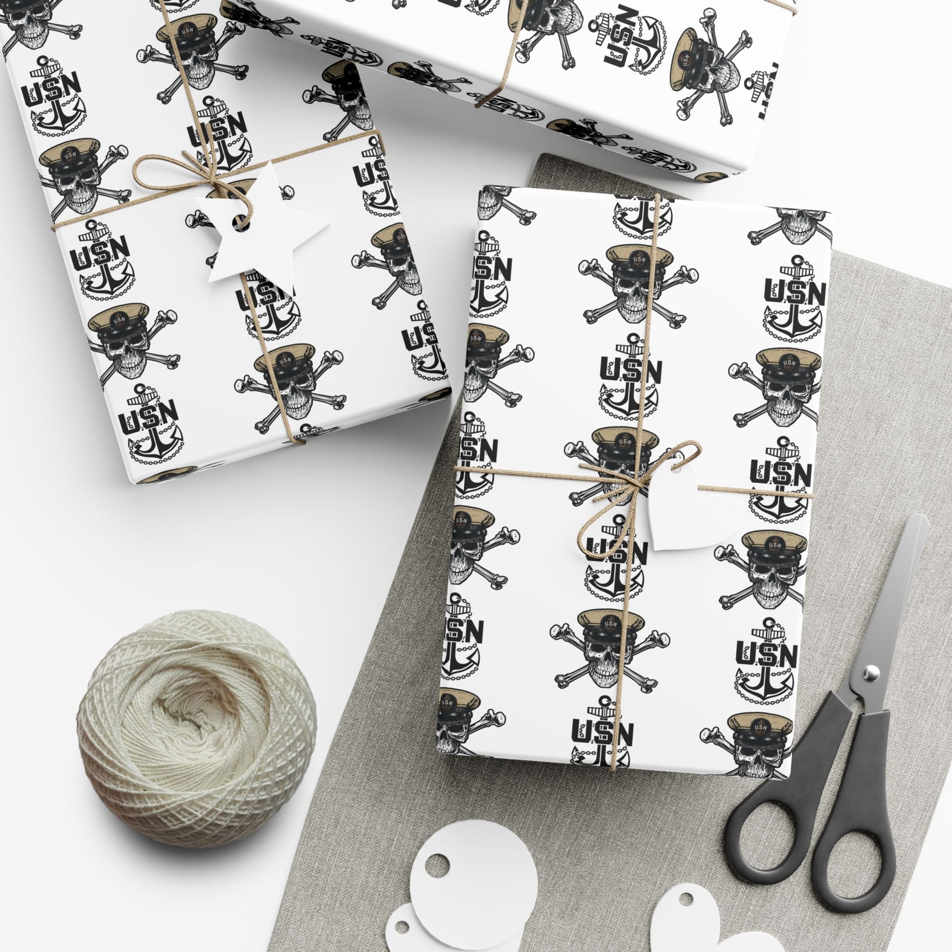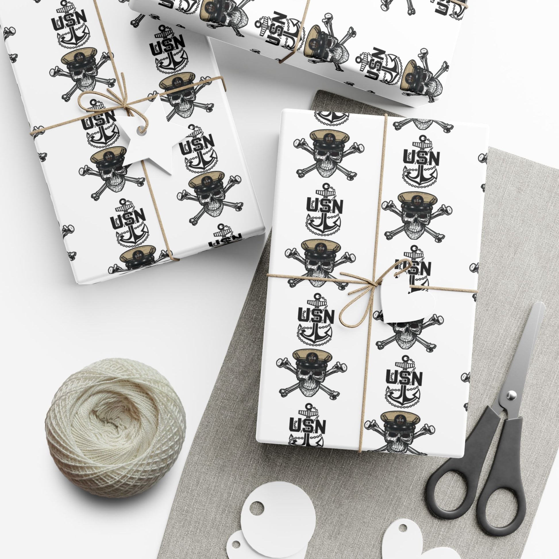 Make any gift bring an even wider smile to the receiver with this Navy Chief designed gift wrap paper. Show them how much thought you put into your gift and celebrate their special day with a personal touch. This naval design makes it clear that effort and style was put into this gift.