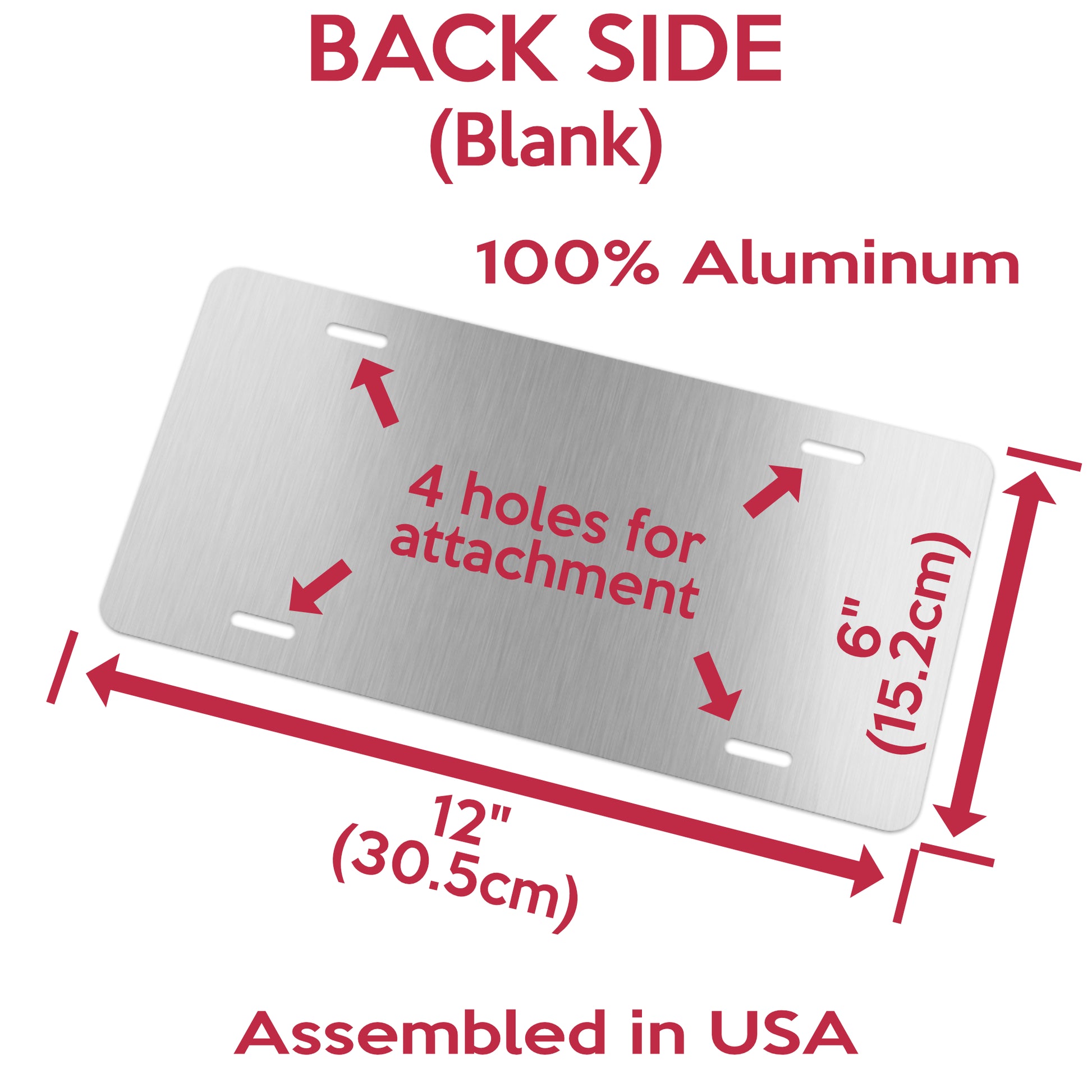 Each plate is 100% made with robust aluminum material and comes with pre-drilled holes for hassle-free installation. Measuring in at 12" x 6", it is the perfect size to decorate any vehicle or wall as a stylish statement piece. (Note: The product does not come with mounting hardware or display stand.)