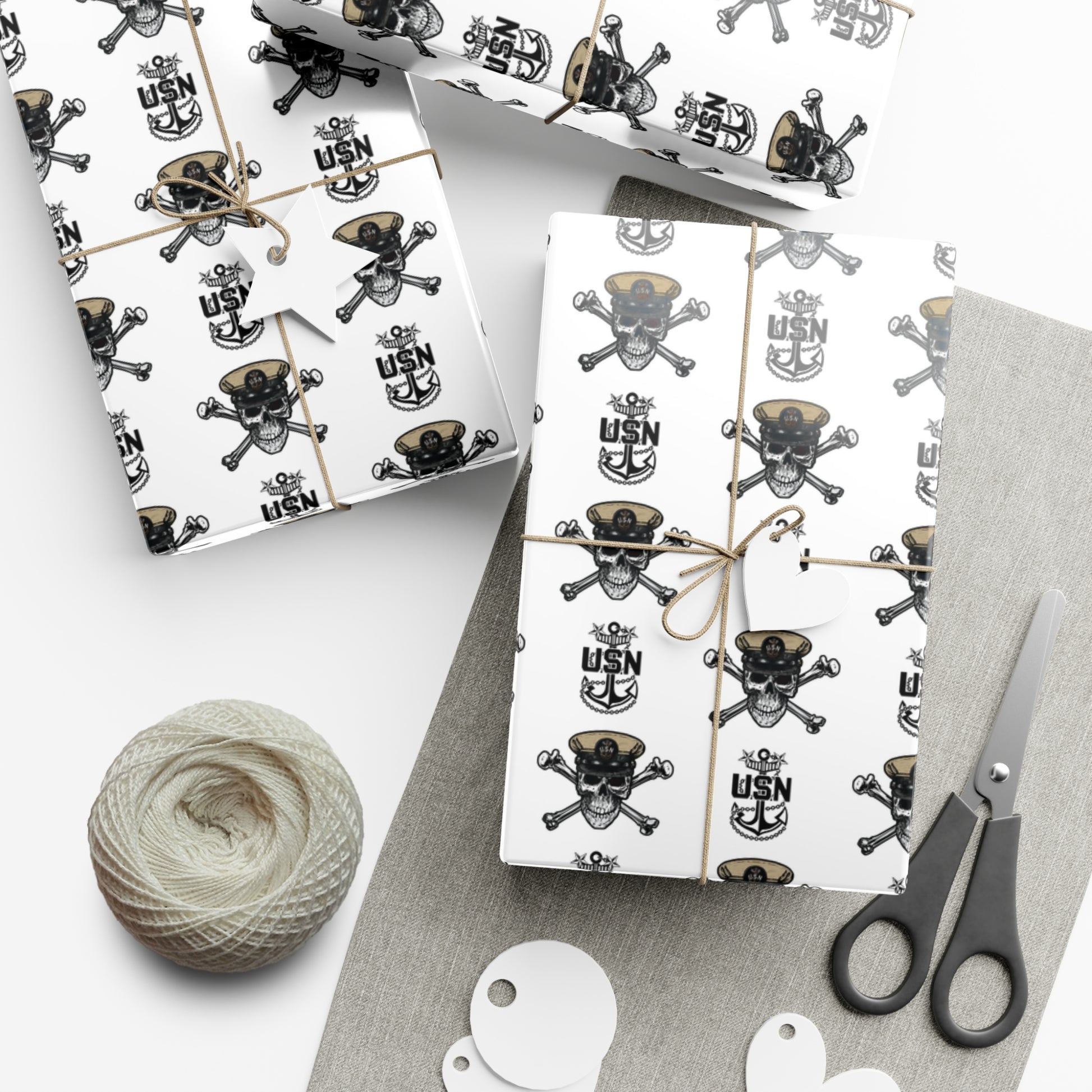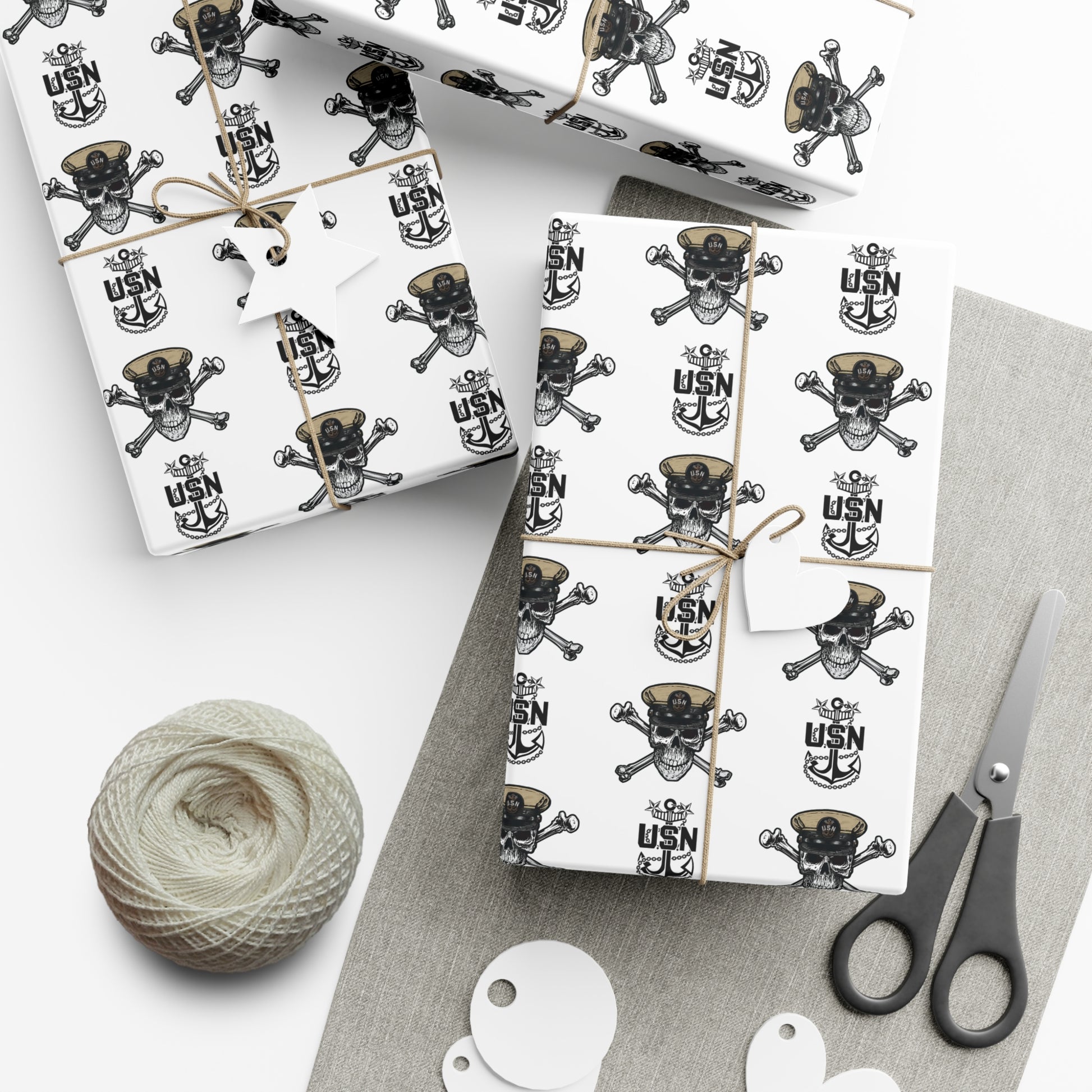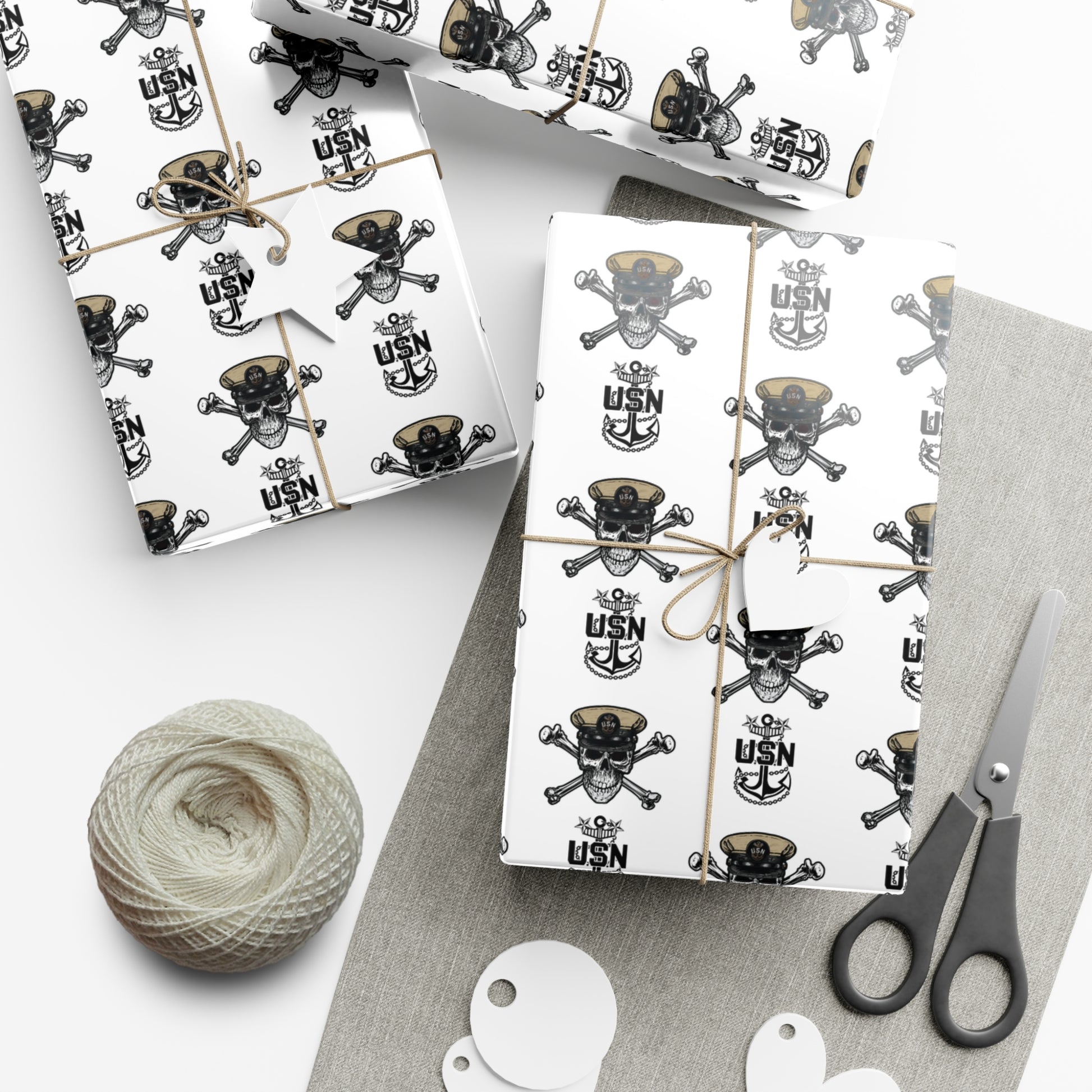 Make any gift bring an even wider smile to the receiver with this Navy Chief designed gift wrap paper. Show them how much thought you put into your gift and celebrate their special day with a personal touch. This naval design makes it clear that effort and style was put into this gift.