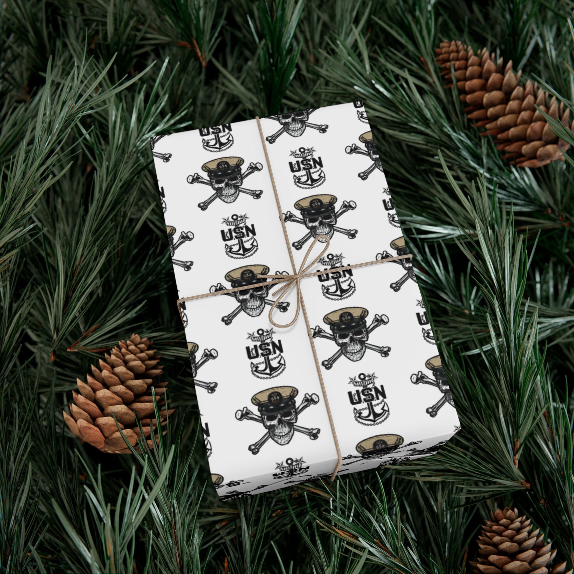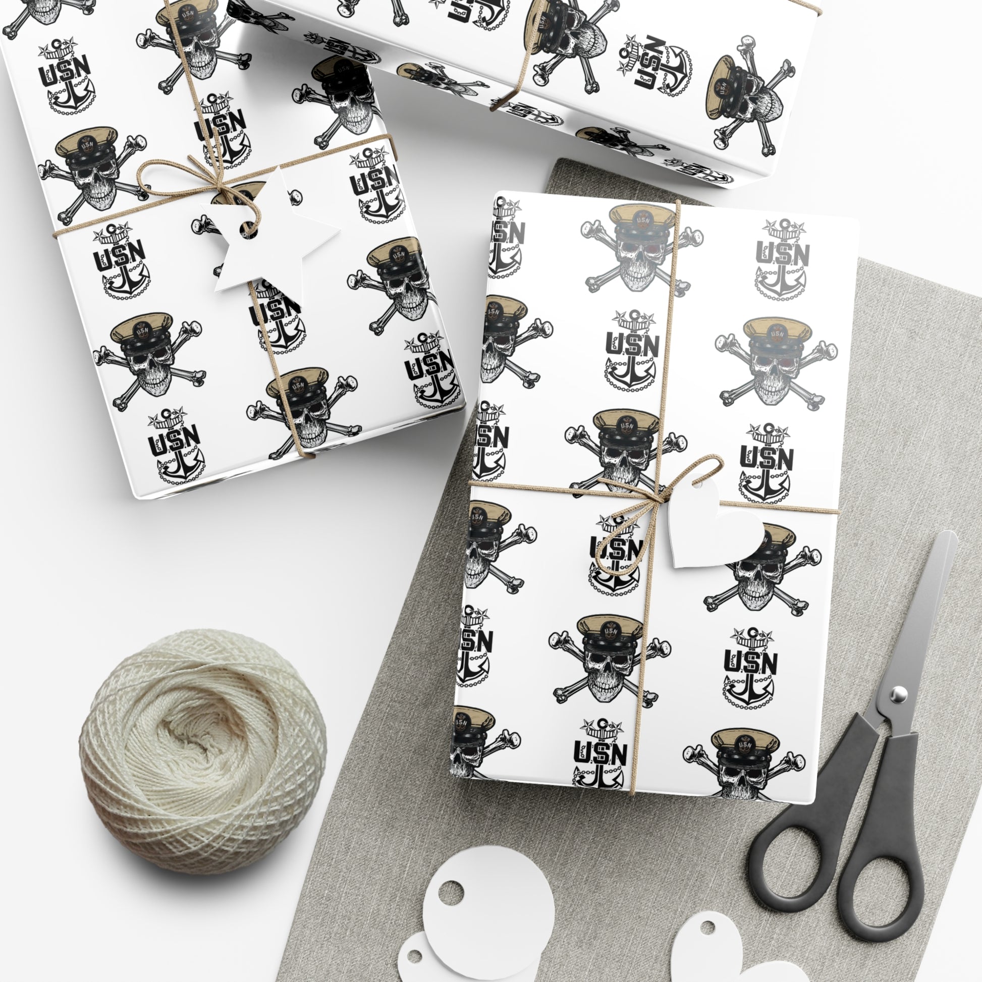 Make any gift bring an even wider smile to the receiver with this Navy Chief designed gift wrap paper. Show them how much thought you put into your gift and celebrate their special day with a personal touch. This naval design makes it clear that effort and style was put into this gift.