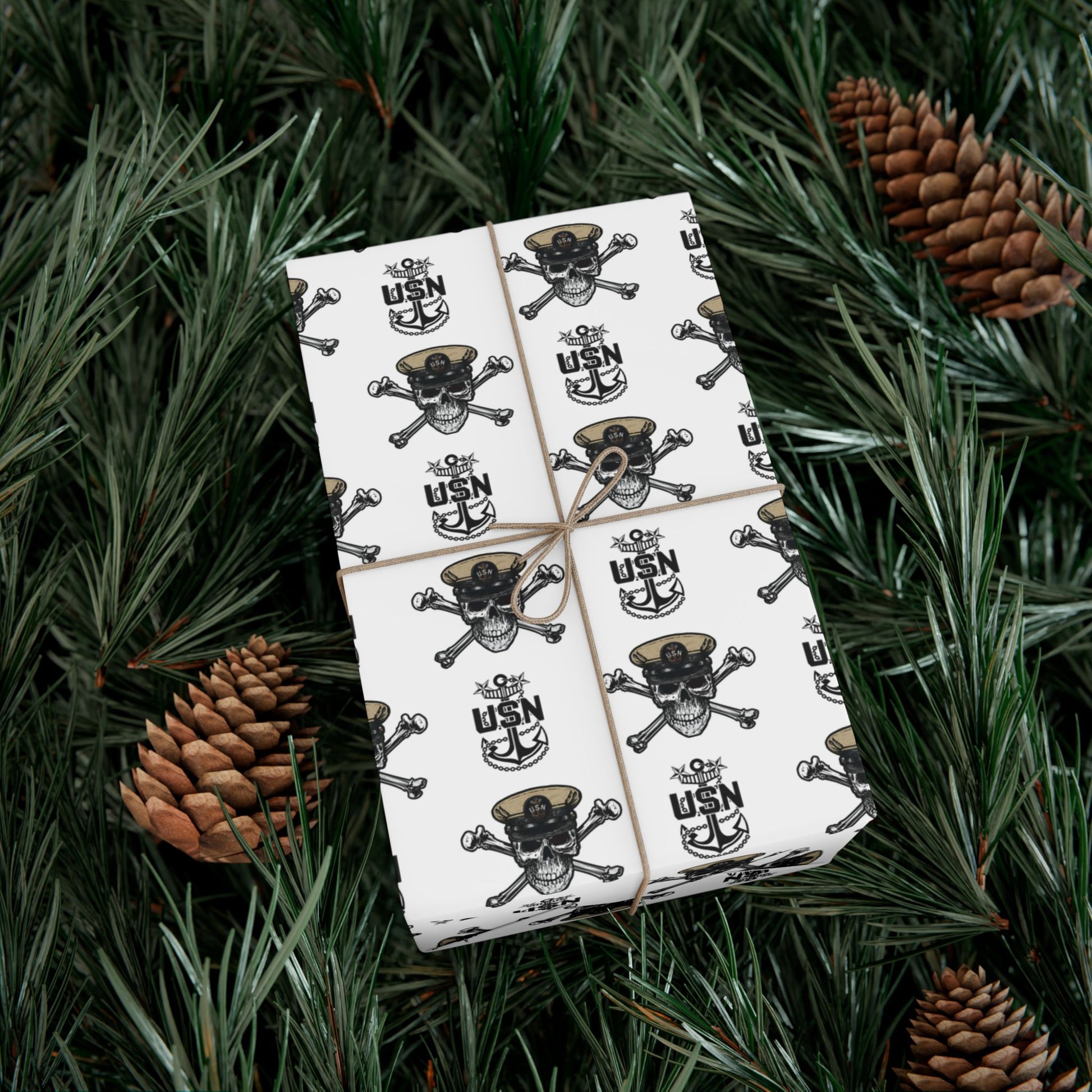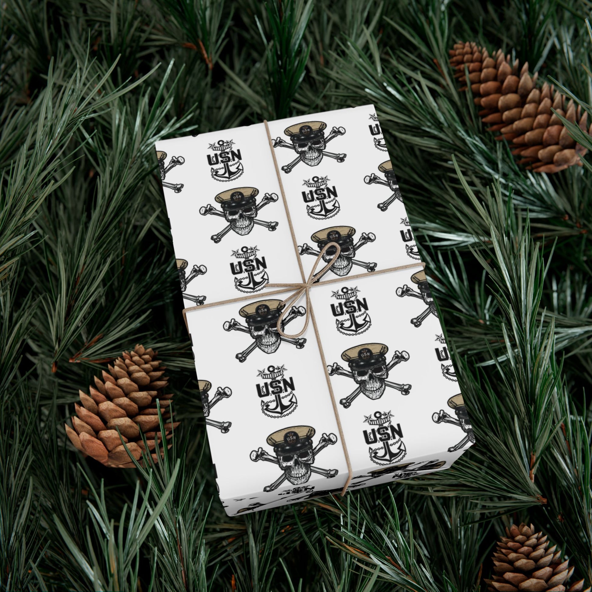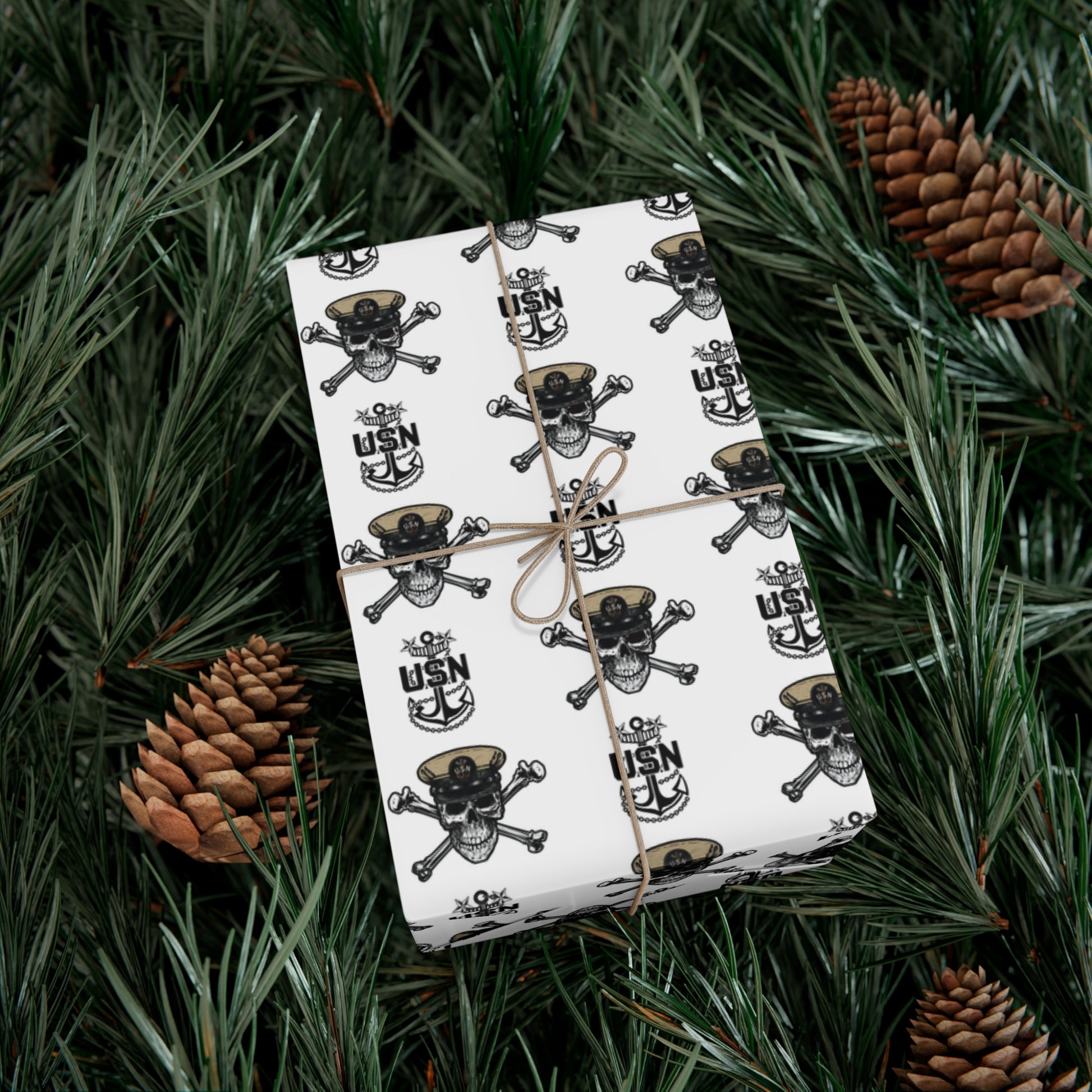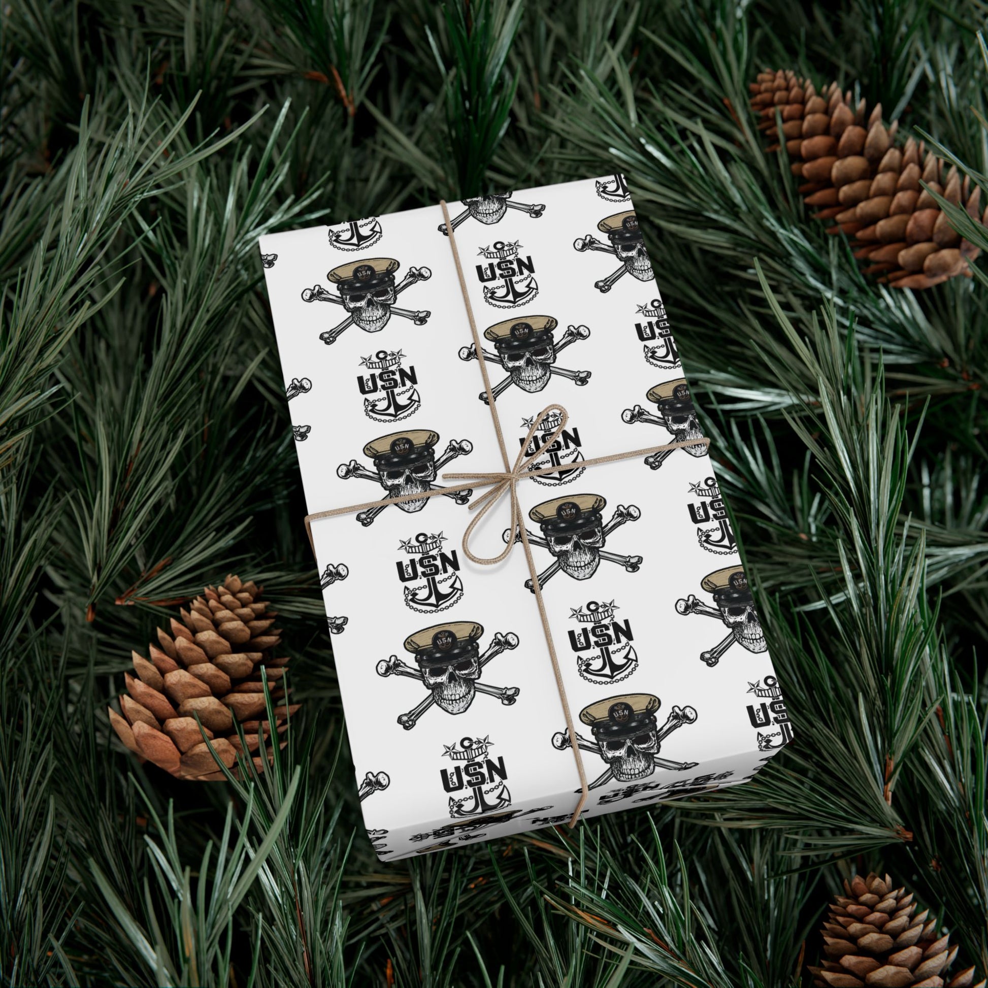 US Navy MCPO Master Chief Skull & Crossbones with Anchors White Gift Wrap Papers