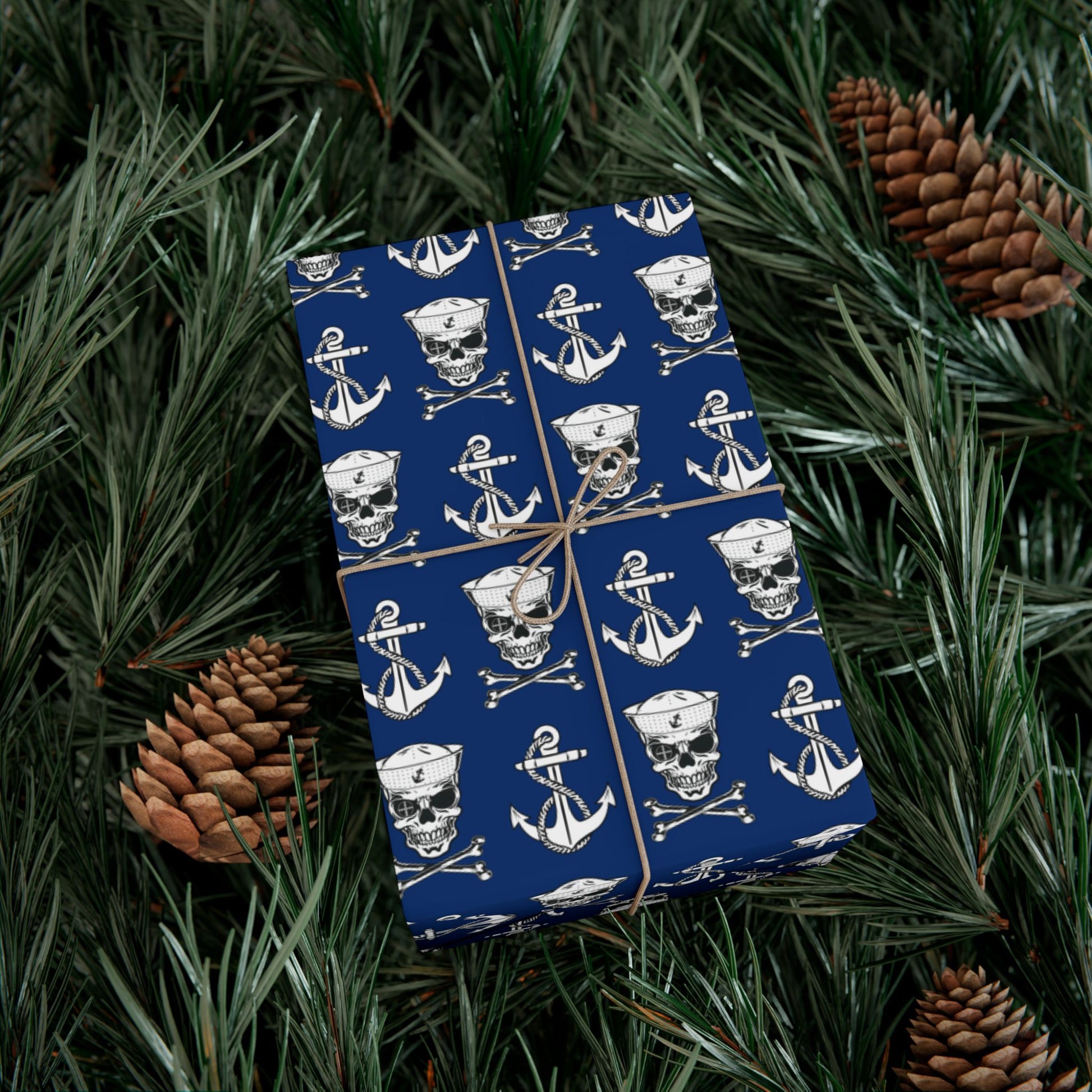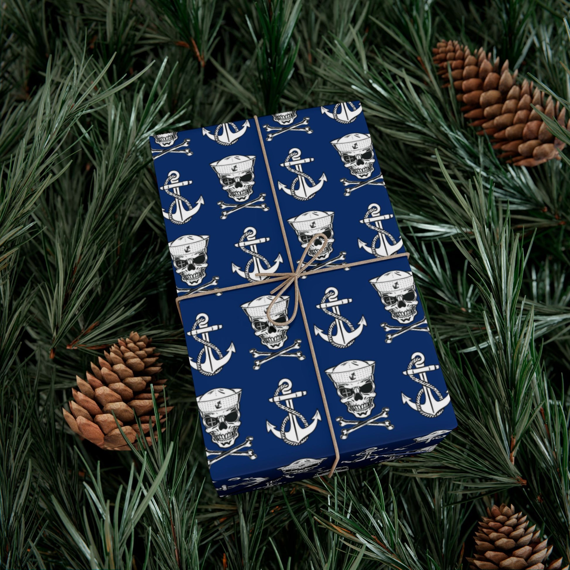 US Navy Sailor Skull Crossbones and Anchors Blue Gift Wrap Papers
