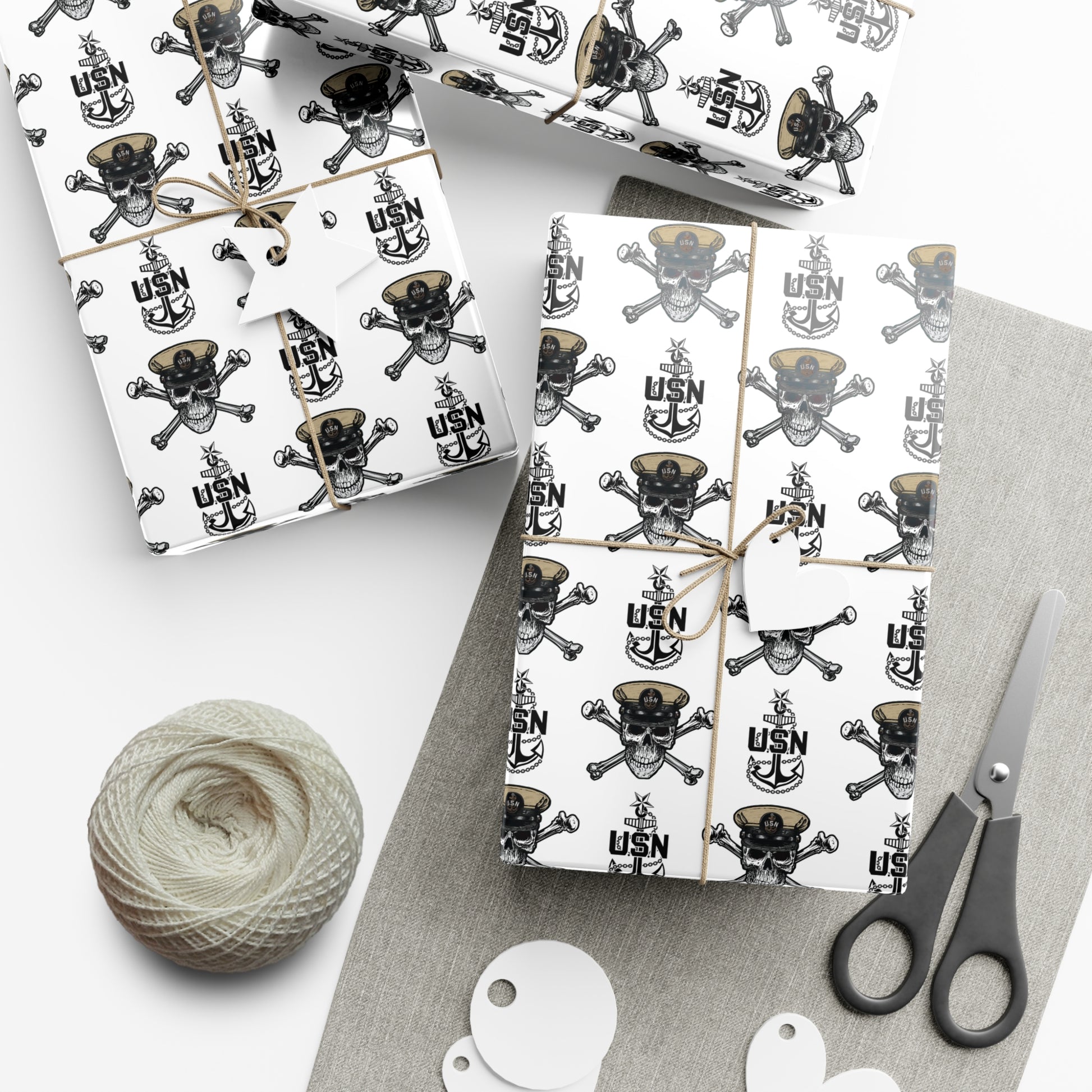 US Navy SCPO Senior Chief Skull & Crossbones with Anchors White Gift Wrap Papers