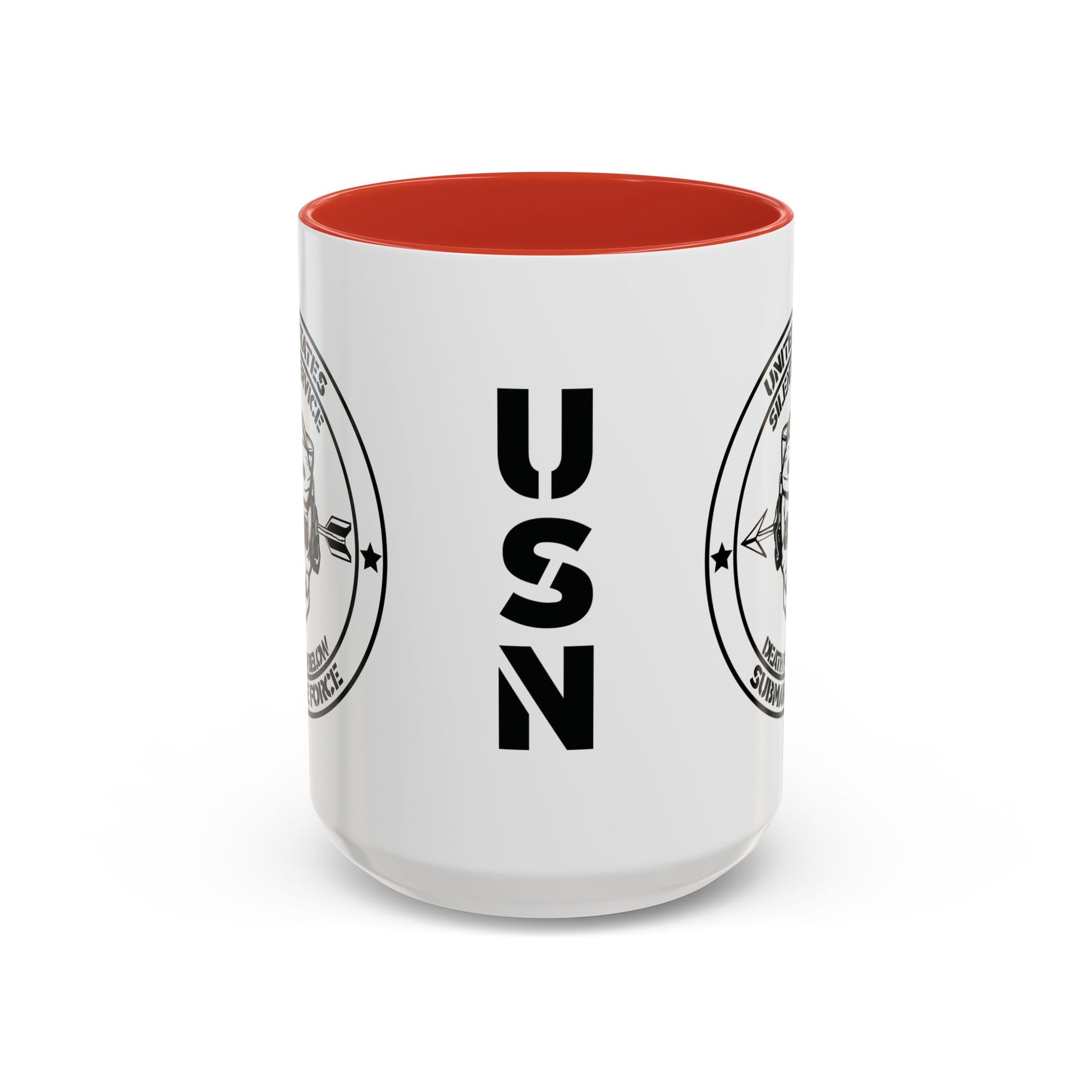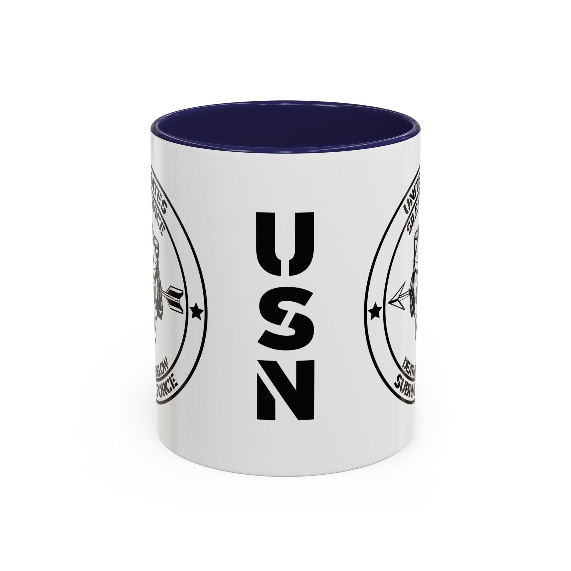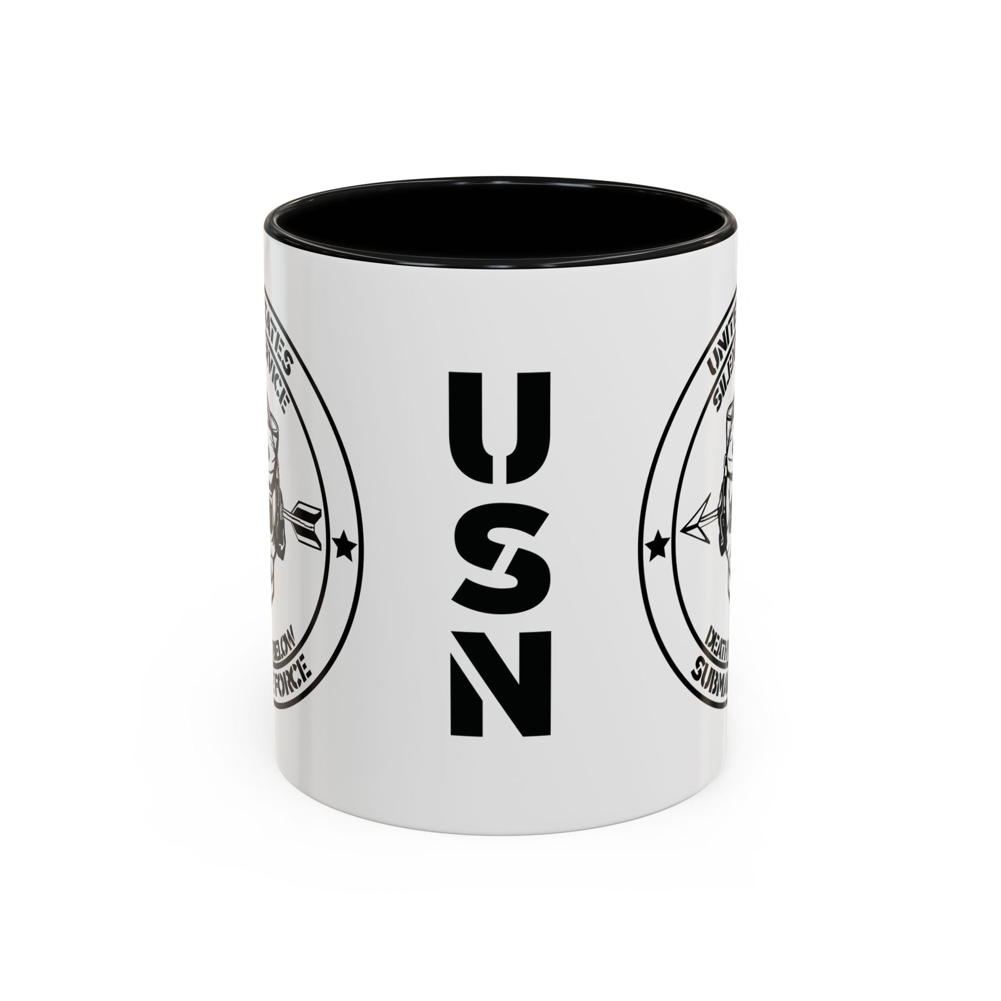 United States Navy Submarine Force Silent Service Death from Below Sailor Skull Ceramic Two-Tone Accent Coffee Mug.