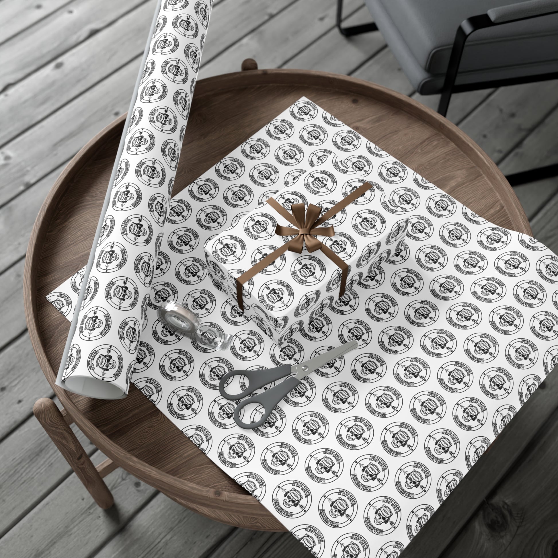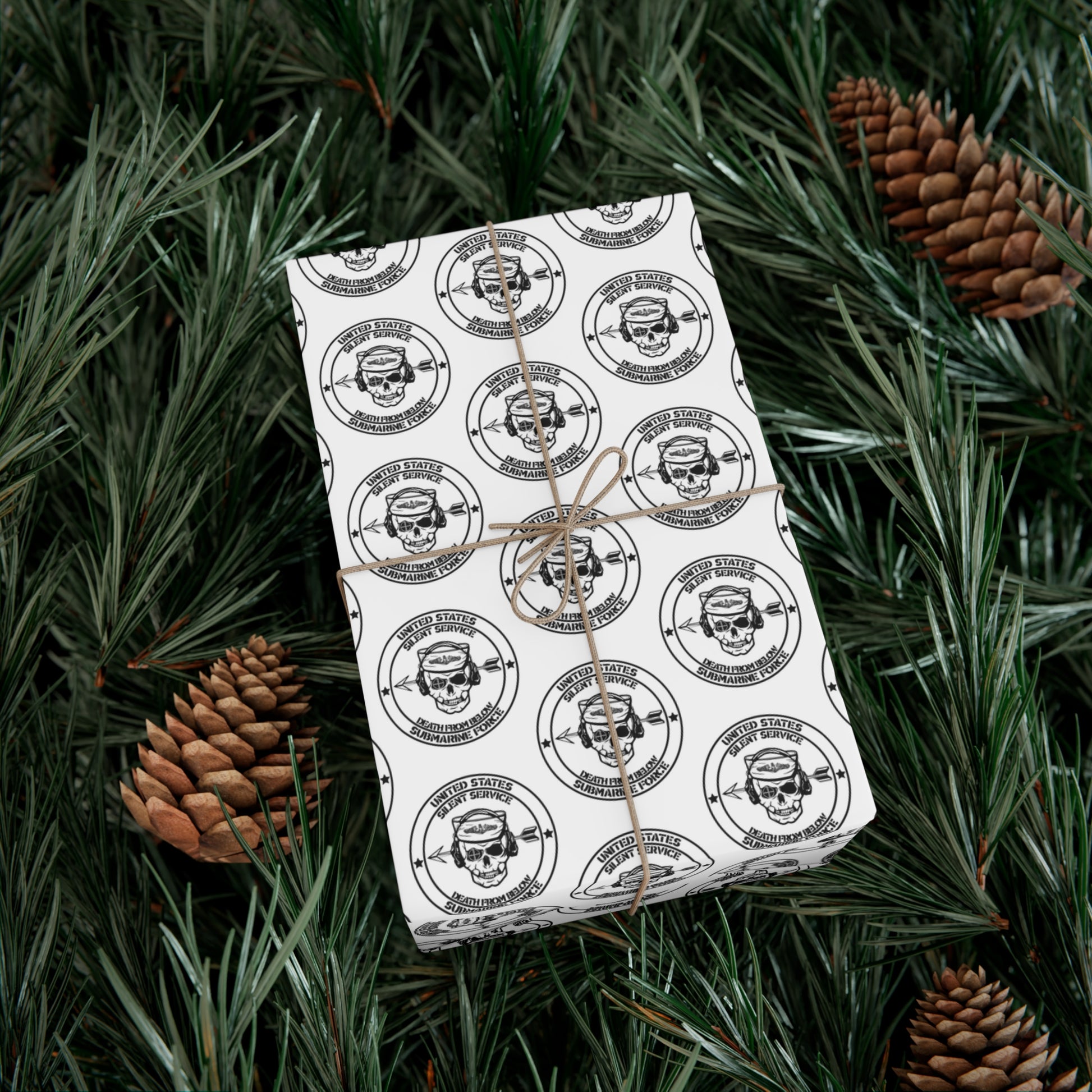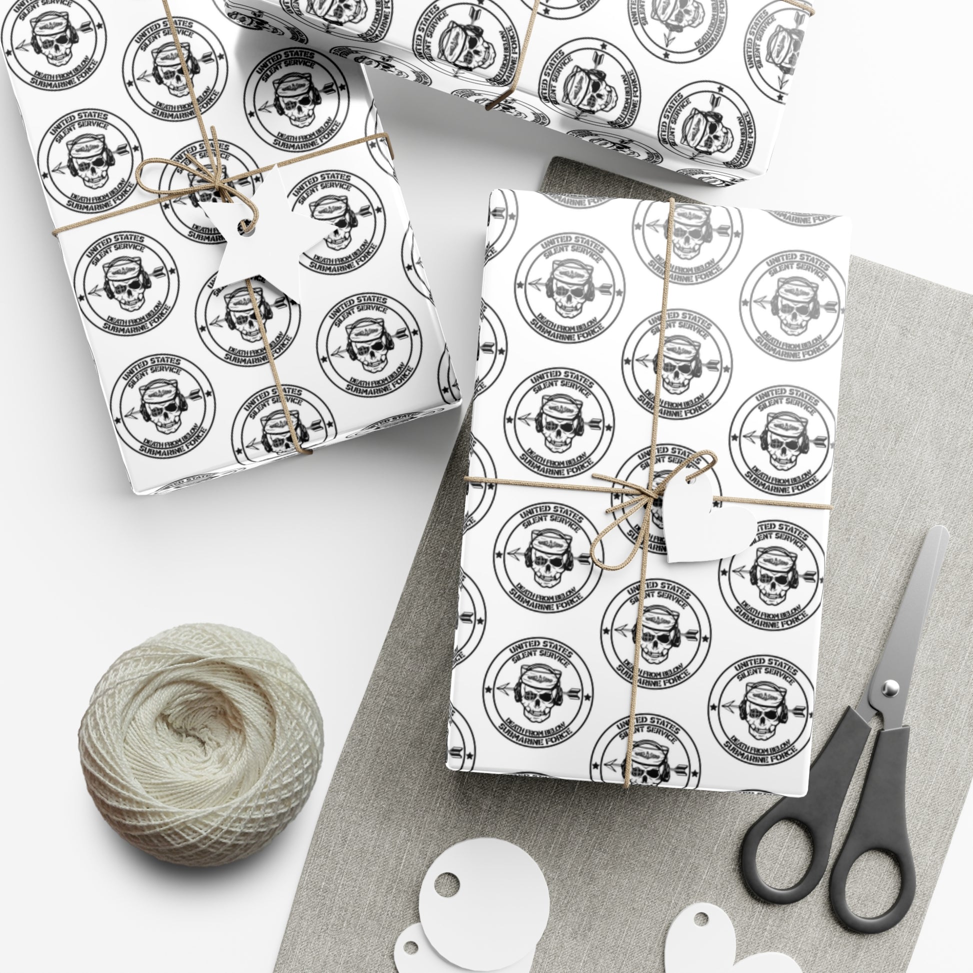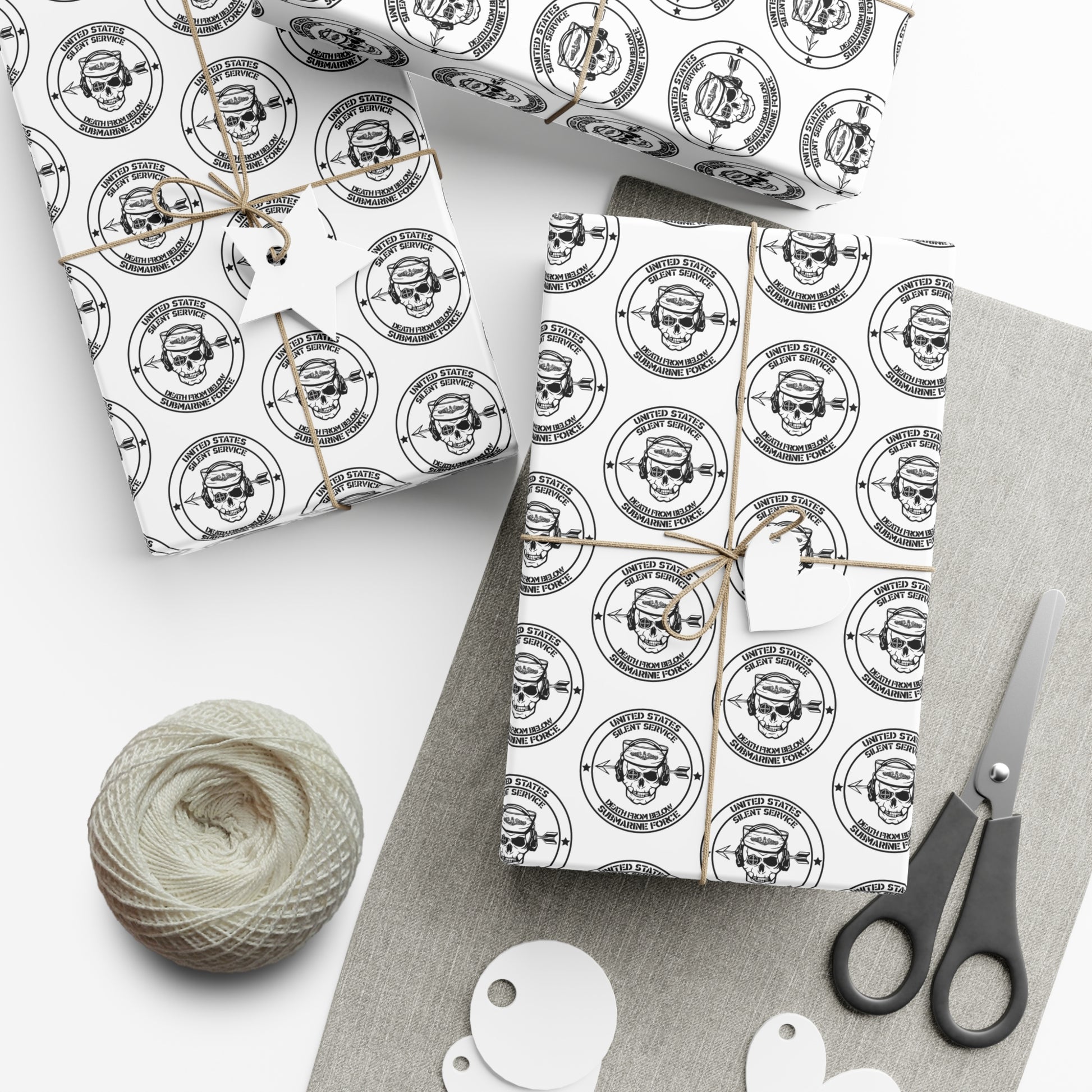 US Navy Submarine Force Silent Service Death From Below Sailor Skull with Dolphins White Gift Wrap Papers