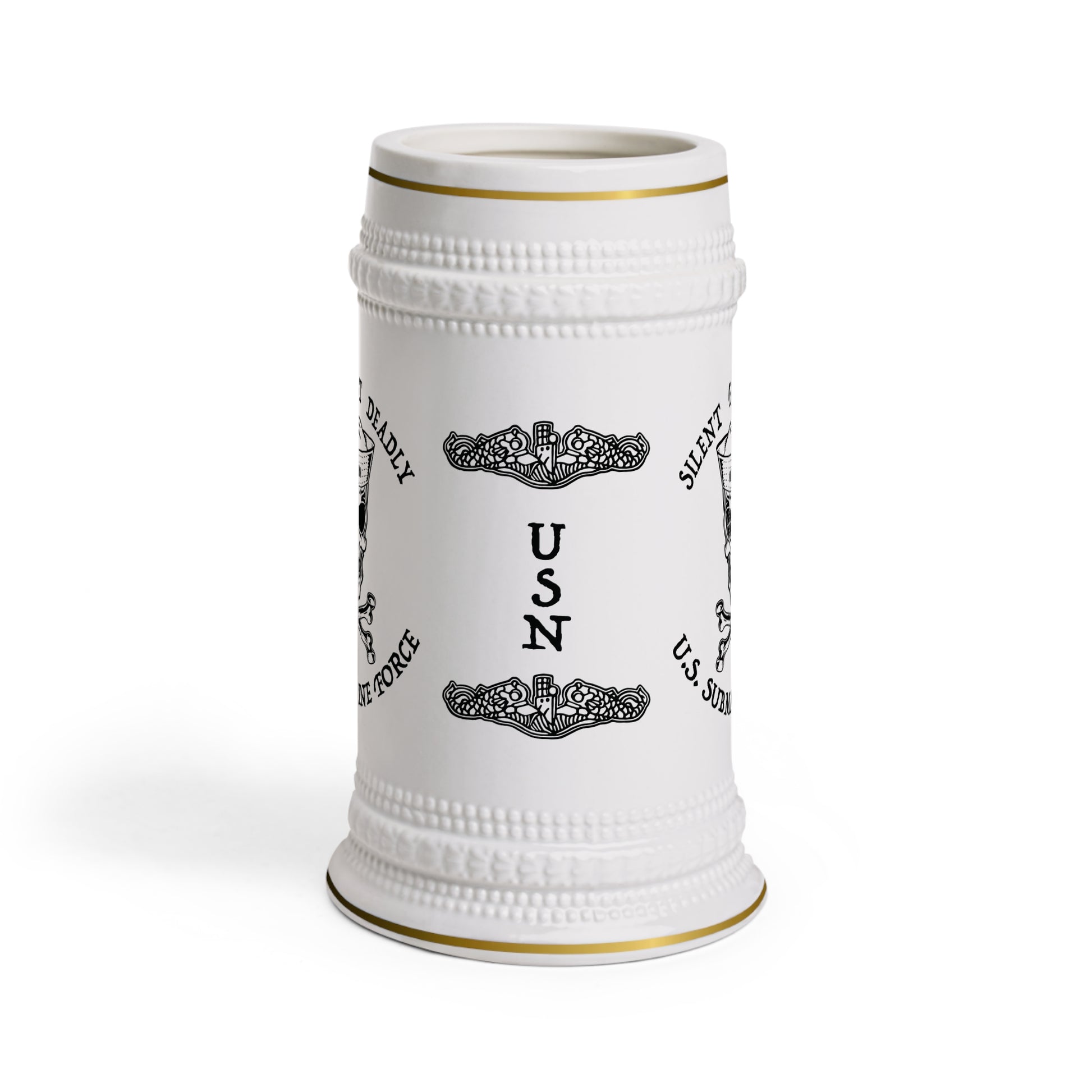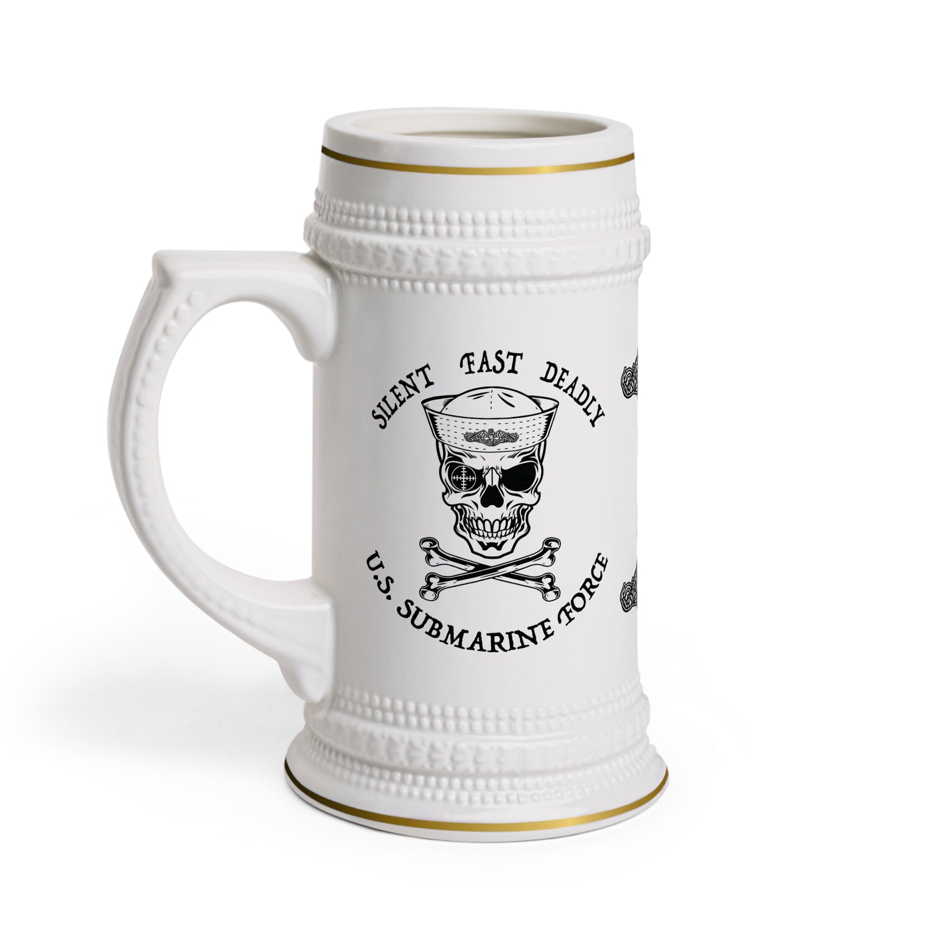 US Navy Submarine Force Skull & Crossbones Sailor Silent Fast Deadly USN Dolphins Drinking Stein Mug