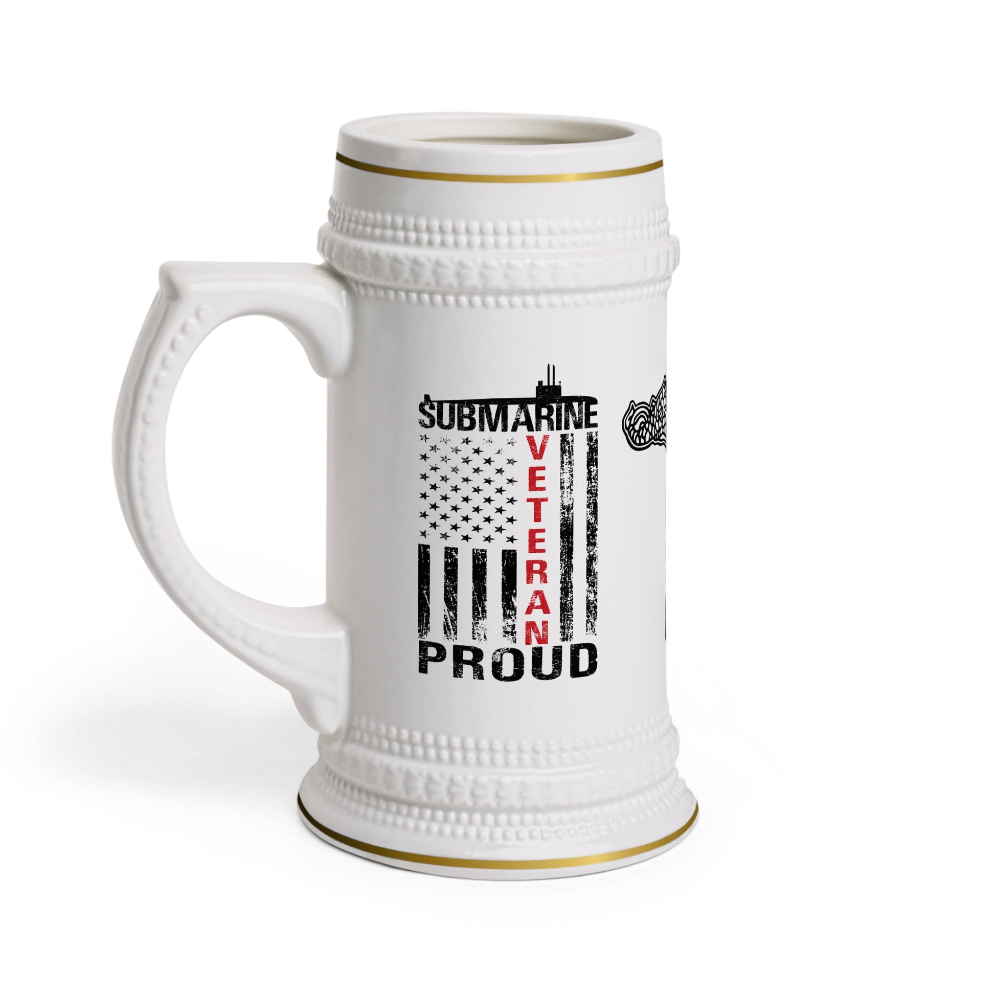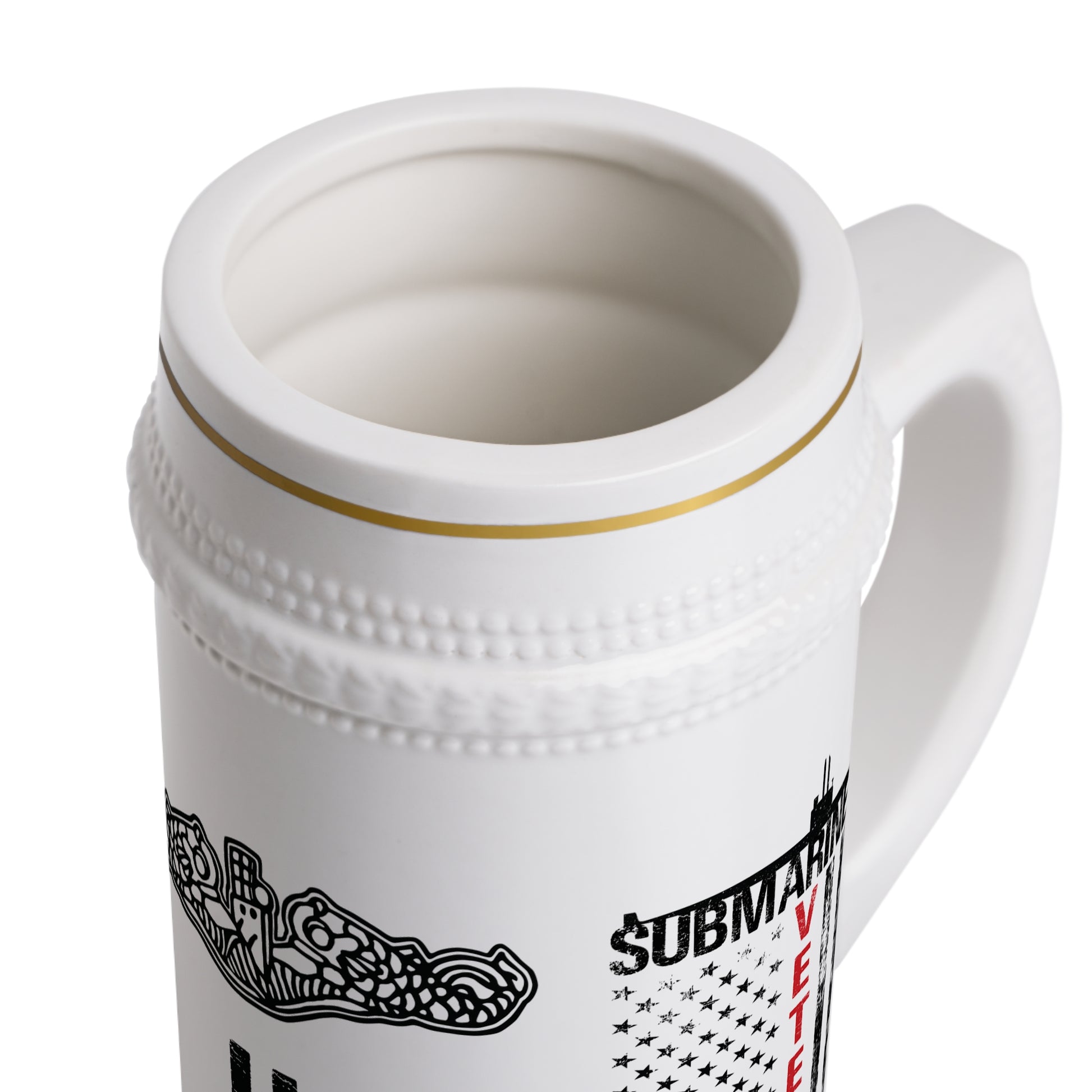 US Navy Submarine Veteran Proud Silent Service USA Distressed Black Flag Stein Mug.