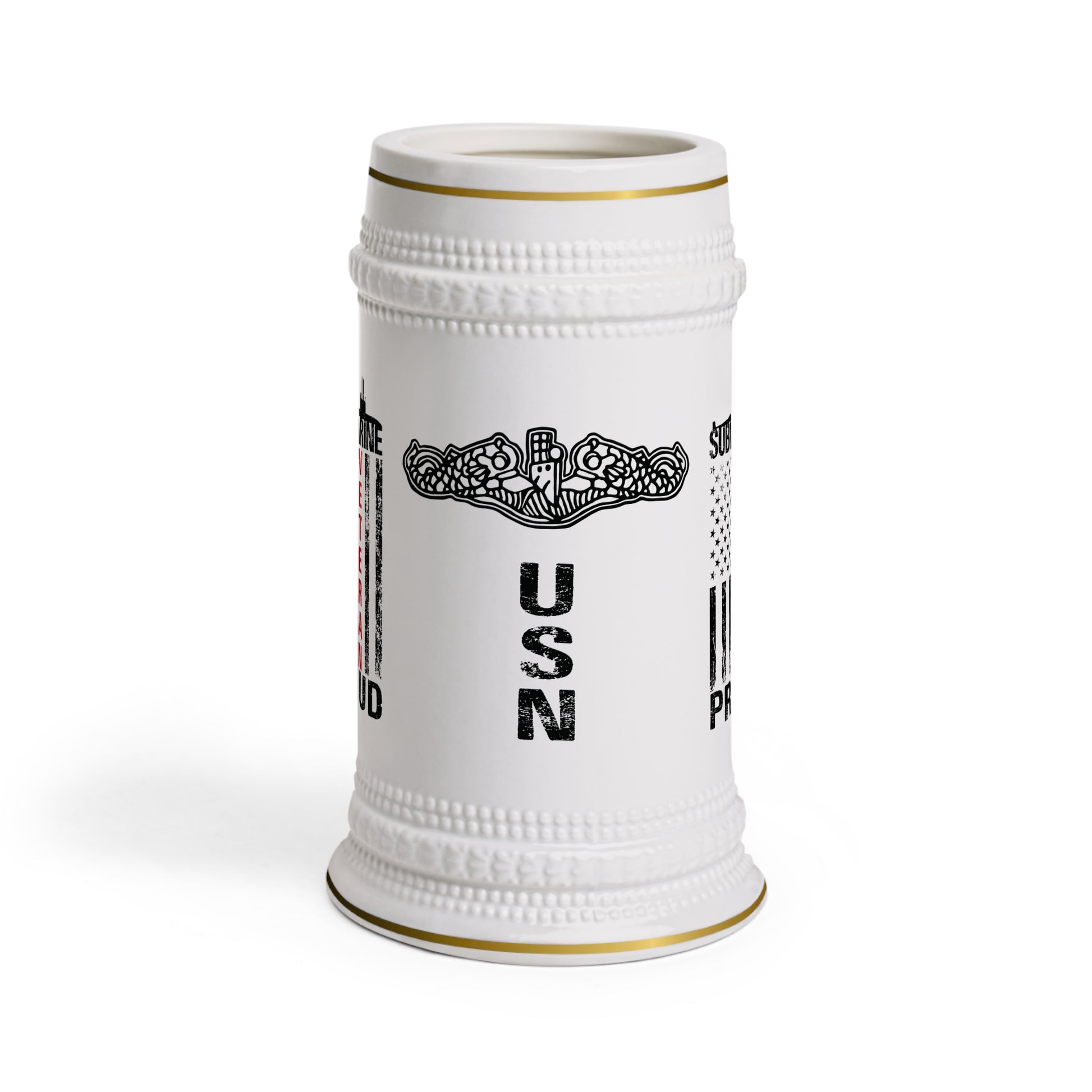 Grab this design on a beer stein mug to show your pride of being a member of the greatest naval military in the world, The United States of America, ‘Merica!